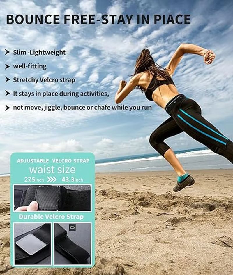 【Soft Material & Form fitting】: Running Waist Belt is made of soft fabric, so the runners belt is very soft and breathable, fits comfortably to your body and Doesn't move, jiggle, bounce, ride up or chafe.