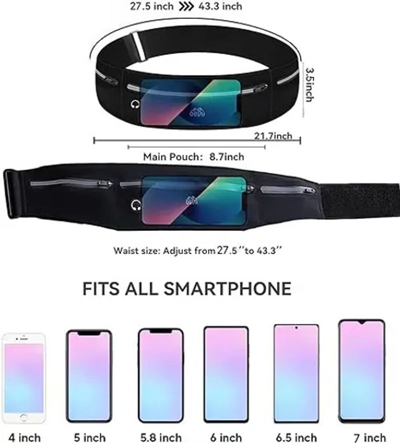 【Adjustable, Fits All Sizes】: You don't need to search for the right size of running waist band anymore. running waist pack Fits waist sizes from 27" to 44" with elastic and adjustable strap, the Cell phone holder for running will fit to all of your family members.
